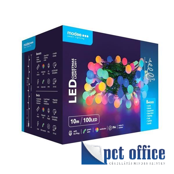A Modee Lighting LED bogyós fényfüzér egy lenyűgöző és hangulatos világítási megoldás, amely kiválóan alkalmas kültéri vagy beltéri fénydekorációkhoz. Elsősorban a karácsonyi időszakra javasoljuk, de mint hangulatvilágítás, az év bármely szakában kellemes hangulatot tud teremteni. Ez a füzér magával ragadó színes fényével és számos különleges világítási módjával varázsolja hangulatossá és elegánssá a környezetet. Kifejezetten stílusos, hogy a led chipek ezekbe az 1 centiméter átmérőjű golyókba lettek belehelyezve.