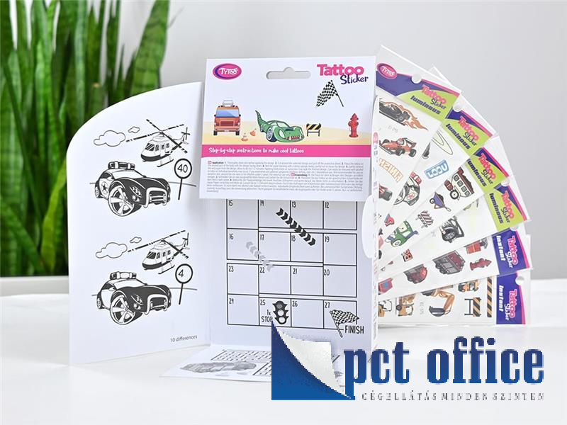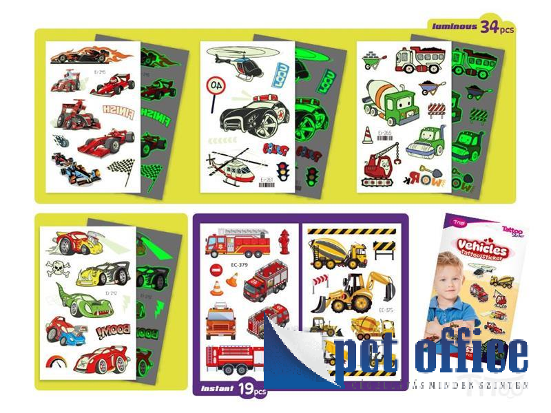 A szett tartalma: 53db Járműves matrica tetoválás 6db íven