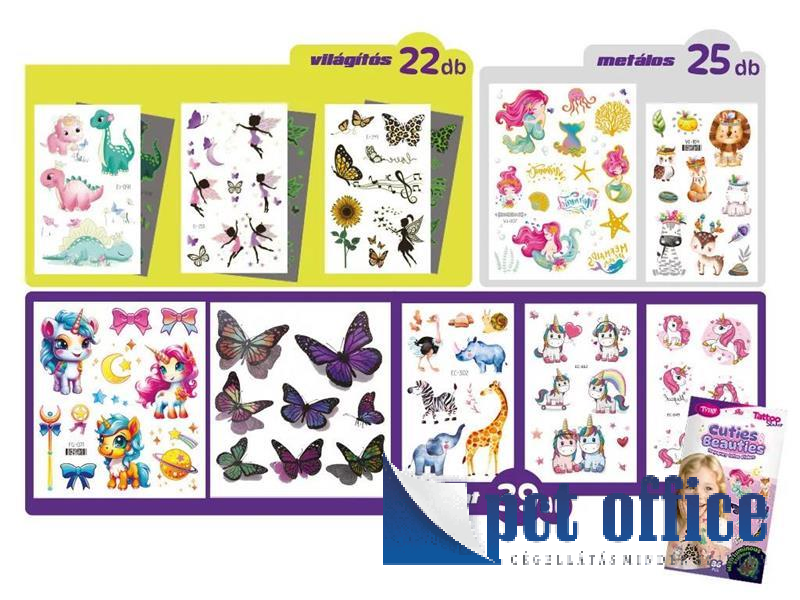 Hercegnők, unikornisok, pillangók, dinók, sellők és megannyi más cuki figura vár ebben a különleges szettben, ami nemcsak színes, hanem világítós és metálfényű tetoválásokat is tartalmaz! Ez a csomag minden kislány álma, akik szeretik a tündér mesék világát.