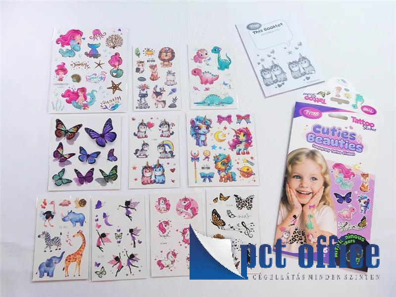 Összesen 86 db tetoválómatrica, 3 féle különleges hatással: