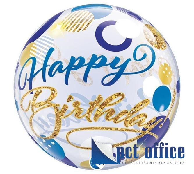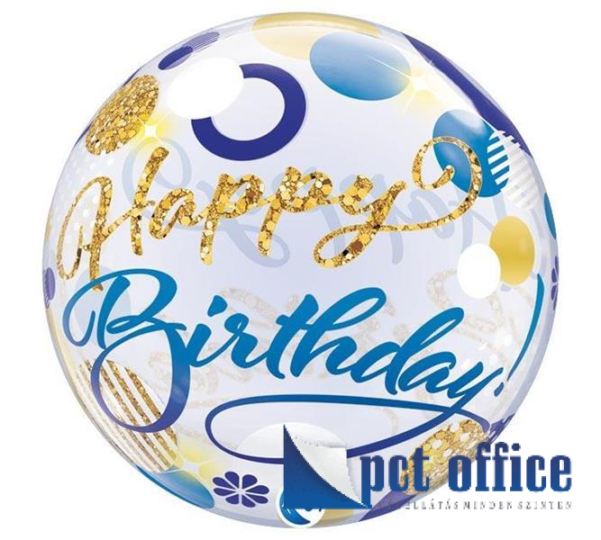 22 inch-es Birthday Blue & Gold Dots Szülinapi Bubble Lufi