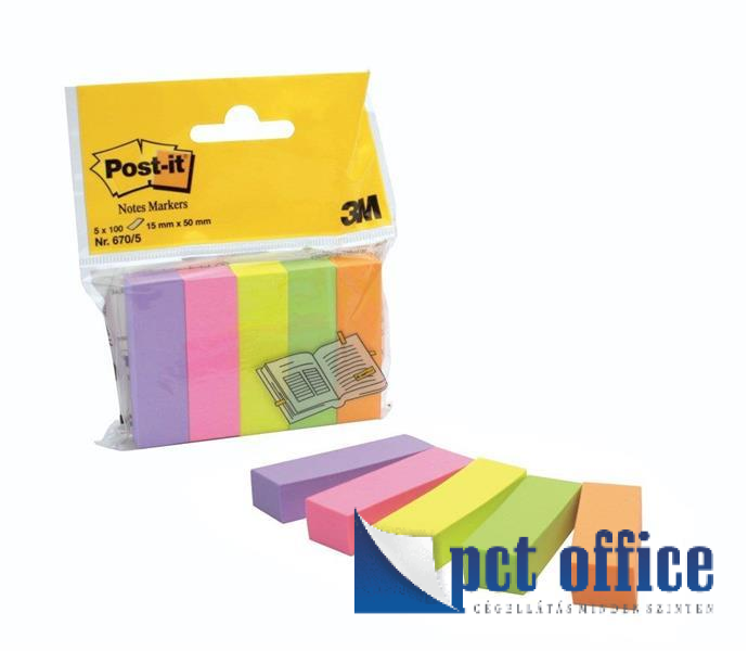 Oldaljelölő/Jelölőcímke, papír, 5x100 lap, 15x50 mm 3M Postit Vegyes