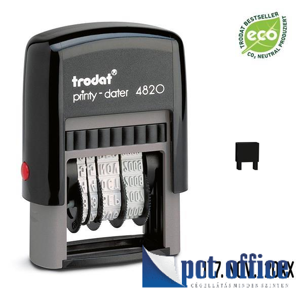 A Trodat Printy dátumbélyegek modern, stílusos dizájnt és tökéletes bélyeglenyomatot biztosítanak. A dátum könnyen beállítható a beállító kerekeknek köszönhetően. Dátumbélyegzőinket a vásárlástól számított 10 éves dátummal szállítjuk. Minden Trodat Printy bestseller klímasemlegesen készül .