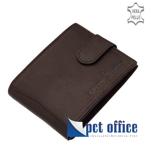 Igazán egyedi megjelenéssel bíró férfi bőr pénztárca modell, melynek fedelén a GreenDeed márkás felirat olvasható.