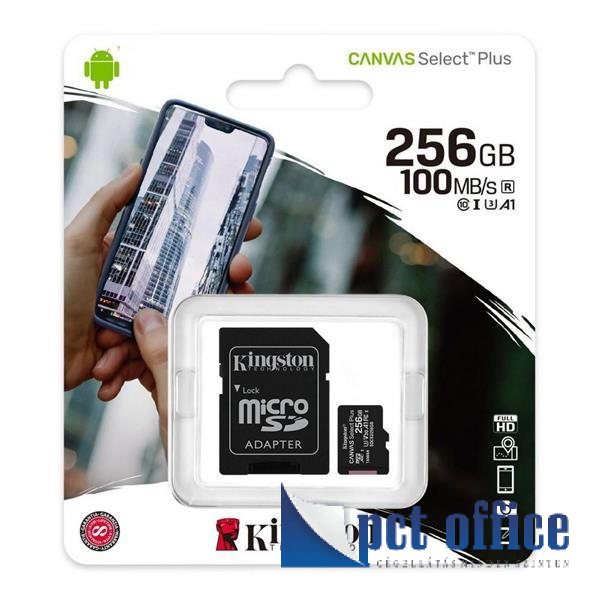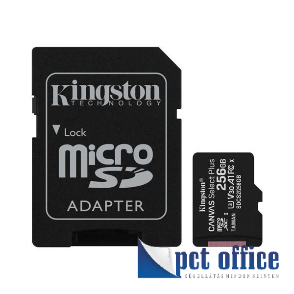 Memóriakártya, Micro SDHC, 256GB, Class 10, KINGSTON Canvas Select adapterrel