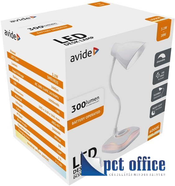 Asztali lámpa ledes AVIDE 3.2W USB fehér (300 lumen)
