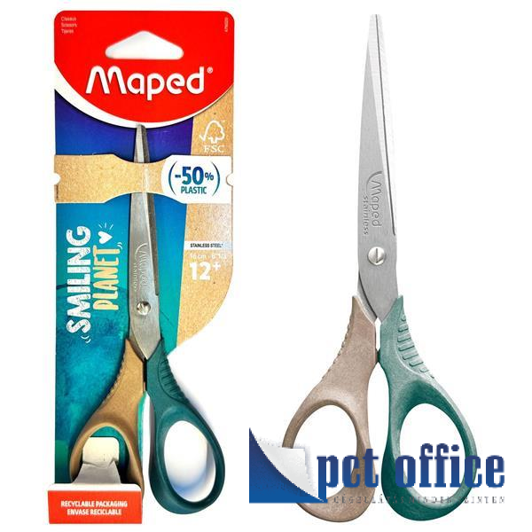 Teremtsünk együtt egy jobb világot! SMILING PLANET: egy új termékcsalád, amely elkötelezett a bolygó iránt egy új, FSC fakitermelésből és újrahasznosított anyagokból készült anyag révén, hogy csökkentsük a műanyag mennyiségét a termékeinkben. Formatervezett olló a környezetvédelem jegyében. - 3D-s, ergonómikus nyél a könnyebb fogásért - rozsdamentes acél pengék - a nyele 50% FSC tanúsítvánnyal rendelkező farostból áll, ezáltal 50%-kal kevesebb műanyag felhasználásával készül, mint általános társai - 12 éves kortól ajánlott - csomagolása 100% újrahasznosított karton