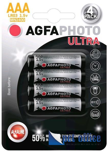 Elem, AAA mikro, 4 db, AgfaPhoto Ultra alkáli Fekete ultra tartós