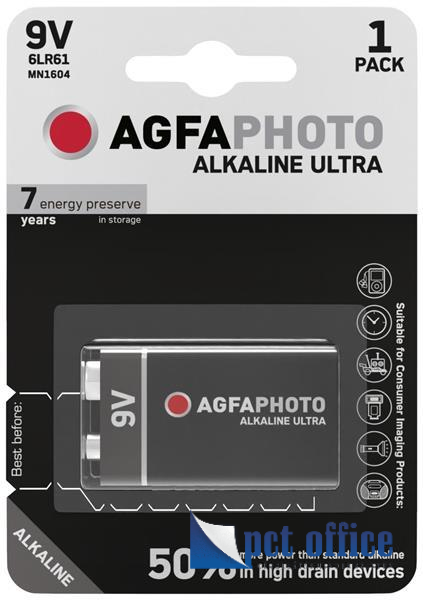 Elem AgfaPhoto Ultra alkáli 9V 6F22/9V Fekete, tartós