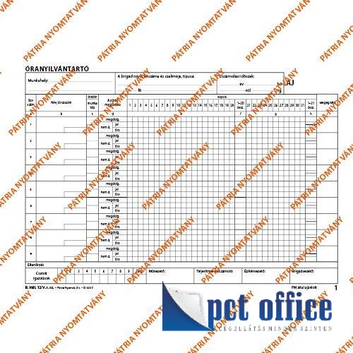 B.Váll.12. Óranyilvántartó A4 25x3 Pátria