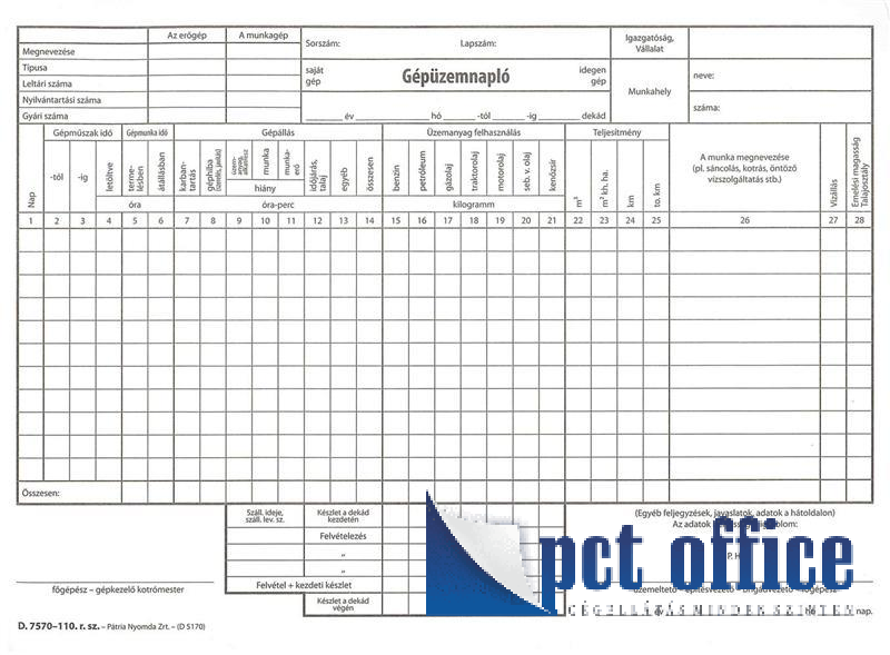 Gépüzemnapló: 25x3 lapos tömb, A/4, fekvő.