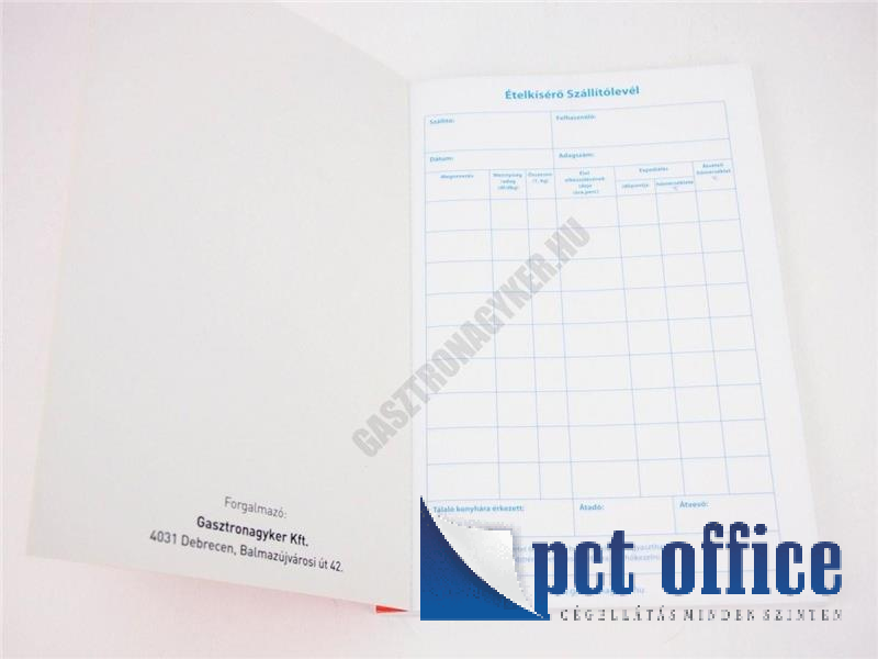 Ételkísérő szállítólevelet az adminisztrációs munka könnyítésére.