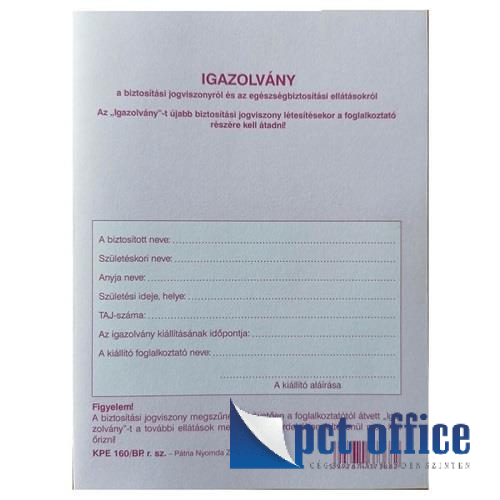 KPE.160/BP OEP igazolvány kiskönyv biztosítási jogviszonyról és az egészségbiztosítási ellátásokról