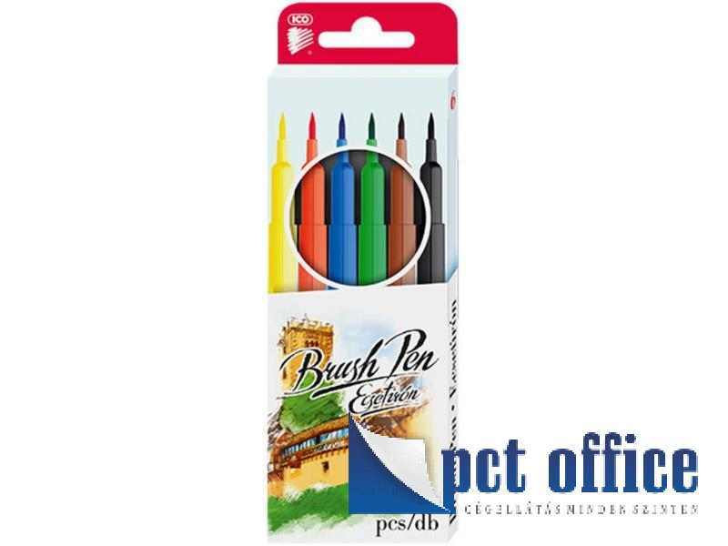 Ecset jellegű, hajlékony írócsúccsal ellátott rostirón, rajzolásra, nagyobb felületek színezésére. 6 féle szín/készlet.