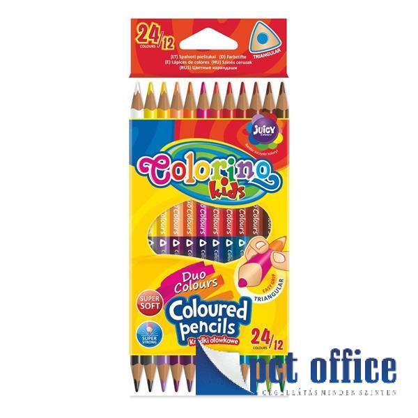 Színes Ceruza 12 db-os háromszögletű Duo 12=24 Colorino Kids