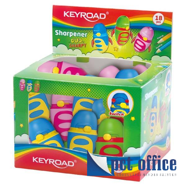 • Ceruzahegyező 2 lyukú Tartályos Keyroad Robby Vegyes színek