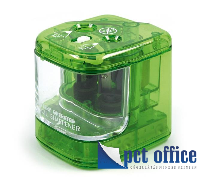 Elemes hegyezőgép, működtetés 4 db ceruzaelemmel, normál és vastag, grafit- valamint színes ceruzák hegyezéséhez.