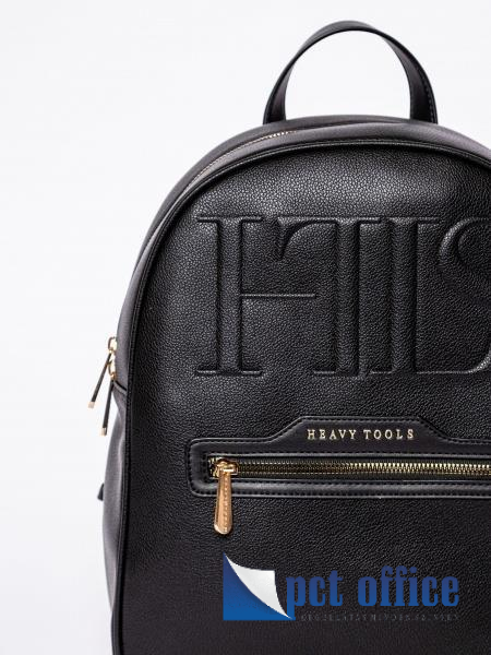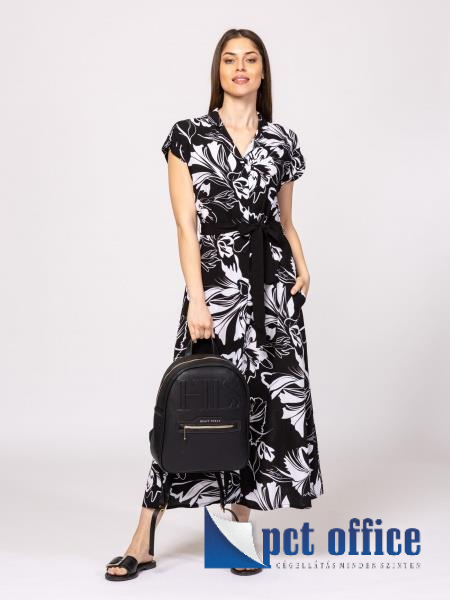 Női műbőr hátizsák, egy rekesszel, cipzáras első és hátsó zsebbel, cipzáras belső zsebbel, állítható vállpánttal, elején nagy dombornyomott márkajelzéssel. Méretek: 28x34x10 cm. Anyaga: 100% poliuretán, bélés: 100% poliészter.