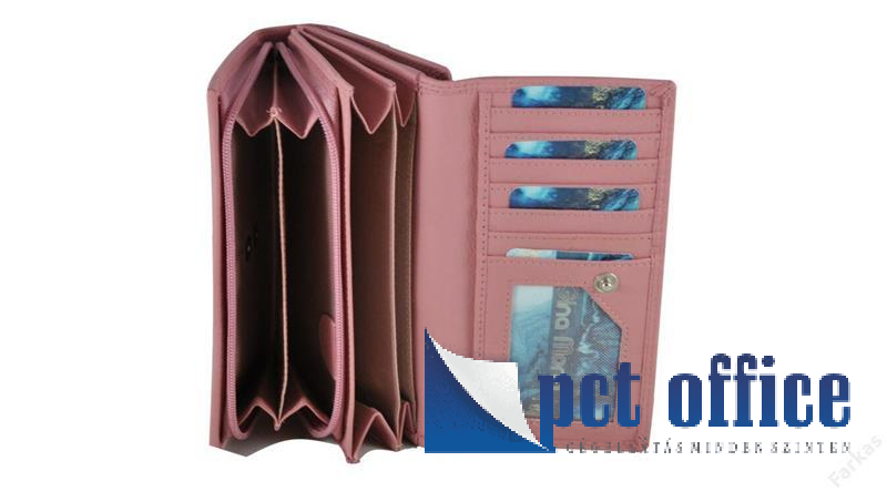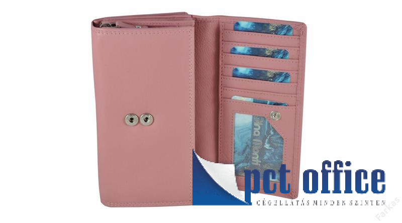 Nagy méretű női pénztárca, mely sok kártyatartó hellyel rendelkezik.