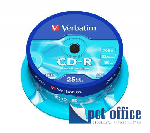 CD-R lemez, 700MB, 52x, hengeren, VERBATIM DataLife 25 db-os