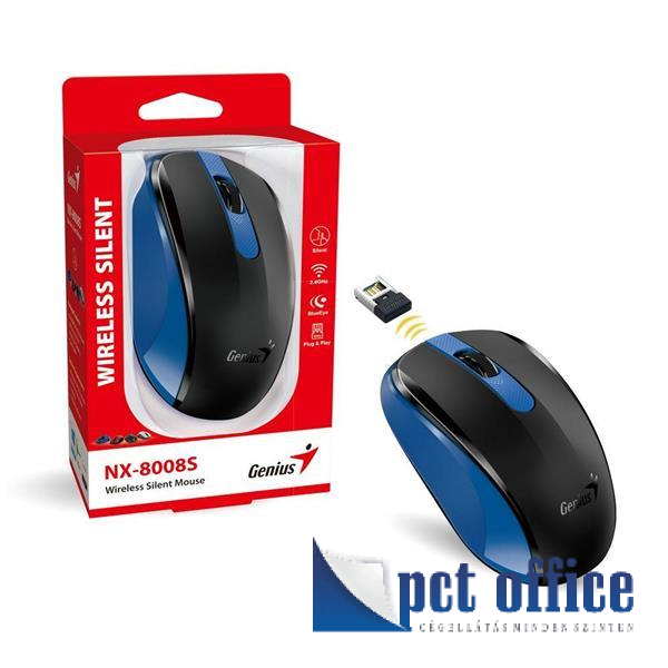 Egér, vezeték nélküli, optikai, normál méret, GENIUS NX-8008S Silent kék