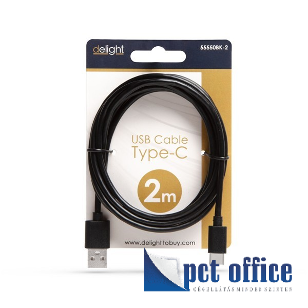 Adat és töltőkábel, 2 m Delight 2.0 USB Type-C fekete
