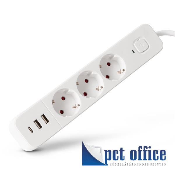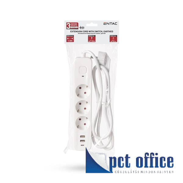 Elosztó 3-as 1,5 m kapcsolóval + 2 db USB + 1 db USB-C Entac