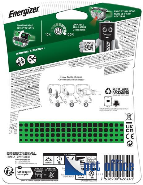 LED-es akkus fejlámpa 400 lm 15 óra, Energizer Vision Ultra HD E301528200