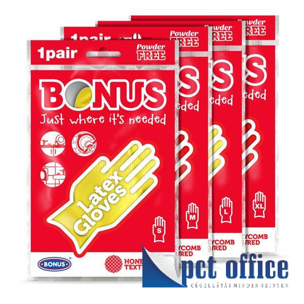 A BONUS háztartási latex gumikesztyű védelmet, extra higiéniát és kényelmet nyújt a háztartási feladatok elvégzéséhez.